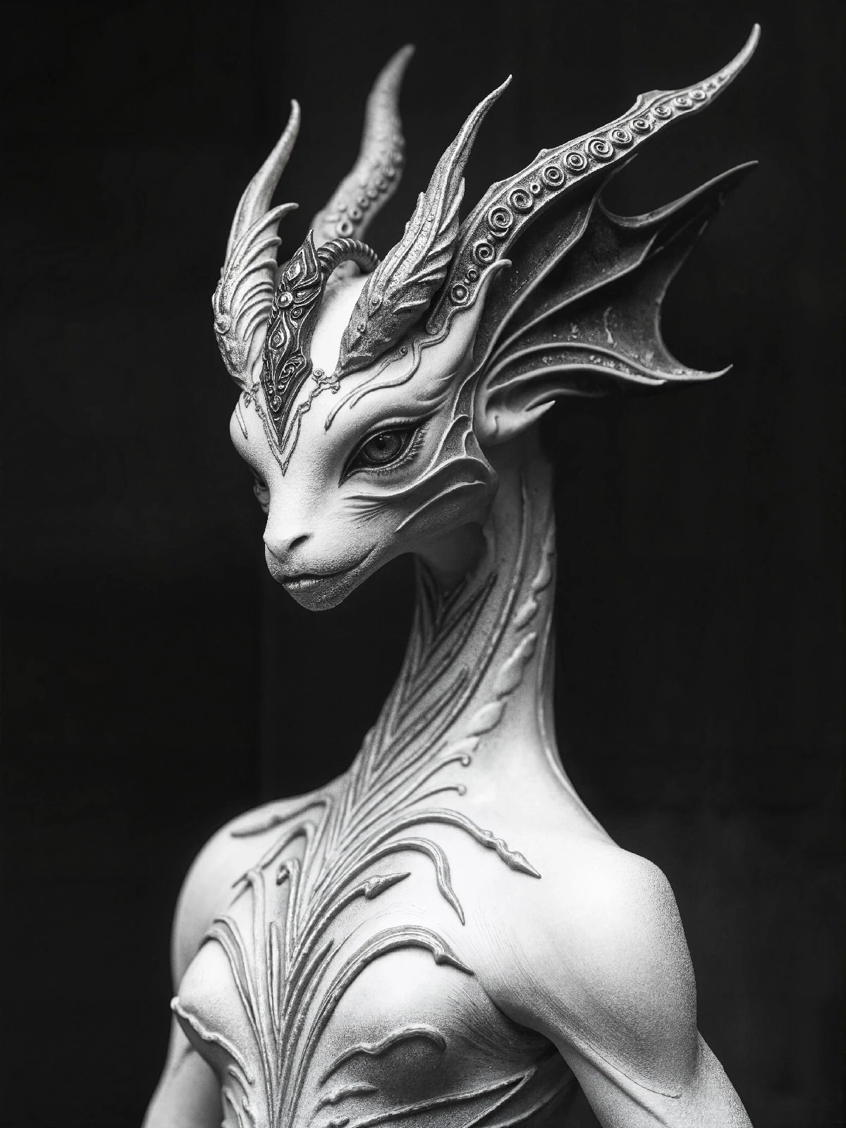 Ses cornes immenses s’élèvent comme des tours d’ivoire vers un ciel inconnu. Créature de majesté absolue, son cou élancé porte l’élégance d’une autre ère — celle où les dieux façonnaient leurs sentinelles dans la pierre blanche et l’ombre. Nul ne passe sans avoir senti son regard peser sur son âme. Collection Créatures Mystiques – Format JPG – 4500 x 6000 px – 300 ppp. Licence : usage personnel uniquement. Toute utilisation commerciale interdite sans accord écrit.
