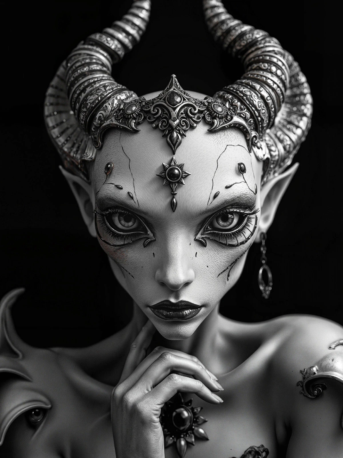 Tatouages d’encre et petites cornes discrètes — cette créature féline se fond dans les ombres avec la grâce de celle qui a appris à ne jamais être vue. Son regard en dit plus que mille mots et son silence est une langue que seuls les initiés comprennent. Collection Créatures Mystiques – Format JPG – 4500 x 6000 px – 300 ppp. Licence : usage personnel uniquement. Toute utilisation commerciale interdite sans accord écrit.