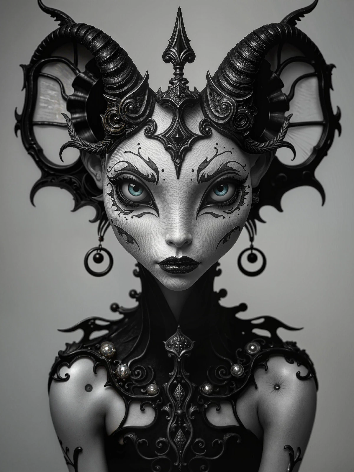 Ses cornes immenses et ciselées portent le poids de tous les rêves qu’elle a gardés. Veilleuse depuis l’aube des temps, elle arpente les couloirs du sommeil et protège les rêveurs des cauchemars qui rôdent. Ses bijoux sont autant de talismans contre l’oubli. Collection Créatures Mystiques – Format JPG – 4500 x 6000 px – 300 ppp. Licence : usage personnel uniquement. Toute utilisation commerciale interdite sans accord écrit.