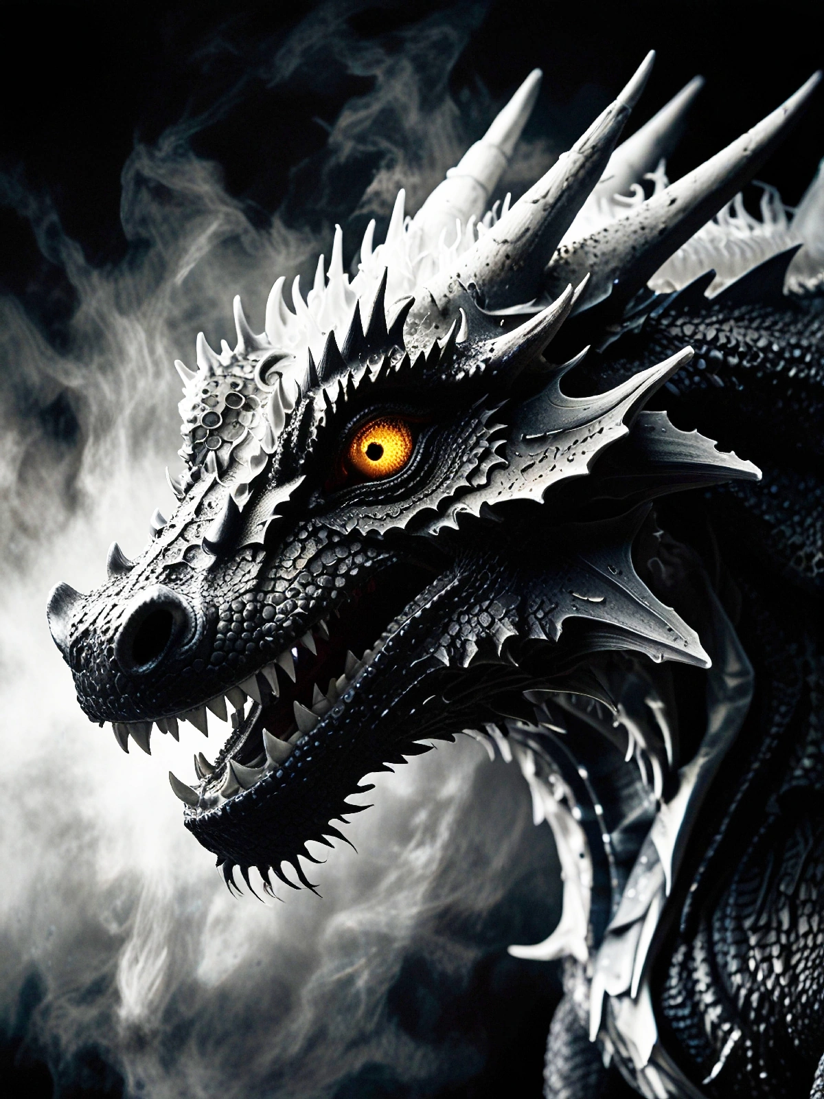 Un seul œil d’or suffit à illuminer l’obscurité absolue dans laquelle ce dragon règne. Être de ténèbres et de lumière à la fois, il incarne la contradiction fondamentale de toute existence. Croiser son regard, c’est comprendre que la peur et la fascination ne font qu’un. Collection Créatures Mystiques – Format JPG – 6000 x 4500 px – 300 ppp. Licence : usage personnel uniquement. Toute utilisation commerciale interdite sans accord écrit.