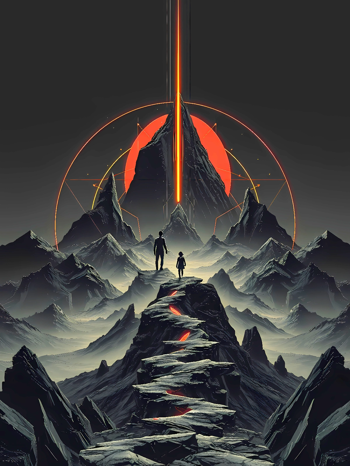Une silhouette solitaire s’avance vers une arche de lumière rouge qui déchire le ciel noir. La lave trace des chemins incandescents entre les roches comme si la planète elle-même respirait. Ce passage éphémère ne s’ouvre qu’une fois — à ceux qui osent traverser. Collection Planète Noire – Format JPG – 6000 x 8000 px – 300 ppp. Licence : usage personnel uniquement. Toute utilisation commerciale interdite sans accord écrit.