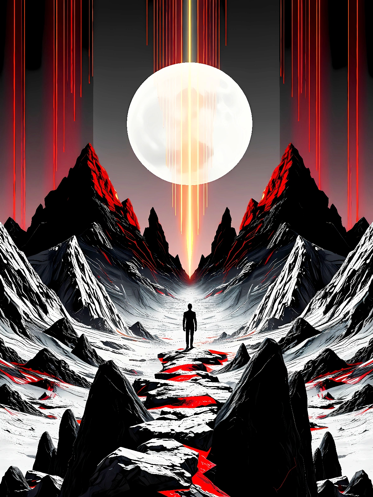 La pluie cosmique ne tombe pas — elle monte. Des gouttes de lumière rouge s’élèvent depuis le sol vers un ciel qui les absorbe sans se remplir jamais. Ce phénomène dure depuis des millénaires. Certains pensent que c’est la planète qui pleure vers le haut. Collection Planète Noire – Format JPG – 6000 x 8000 px – 300 ppp. Licence : usage personnel uniquement. Toute utilisation commerciale interdite sans accord écrit.