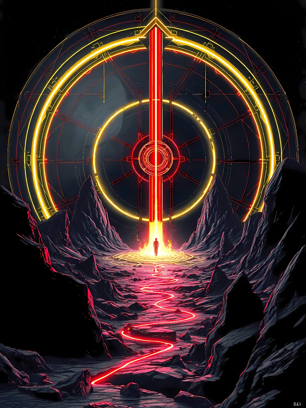 Un portail de géométrie parfaite s’ouvre entre deux falaises de roche noire, révélant derrière lui un monde différent — ou peut-être le même vu de l’autre côté. Les inscriptions sur son cadre sont une invitation ou un avertissement. Personne ne les a encore traduites. Collection Planète Noire – Format JPG – 6000 x 8000 px – 300 ppp. Licence : usage personnel uniquement. Toute utilisation commerciale interdite sans accord écrit.