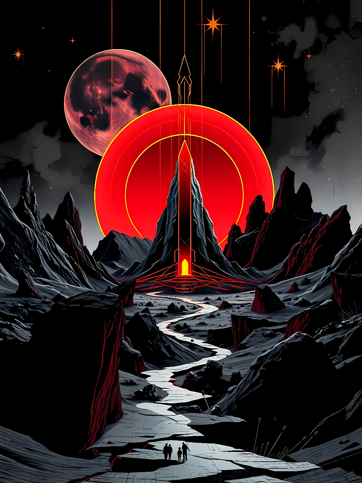 Derrière la porte finale, il n’y a pas de lumière — il y a une absence de tout ce qui précédait. Les roches qui l’entourent portent les traces de ceux qui ont hésité avant de franchir le seuil. Leurs empreintes sont encore là. Eux, non. Collection Planète Noire – Format JPG – 6000 x 8000 px – 300 ppp. Licence : usage personnel uniquement. Toute utilisation commerciale interdite sans accord écrit.
