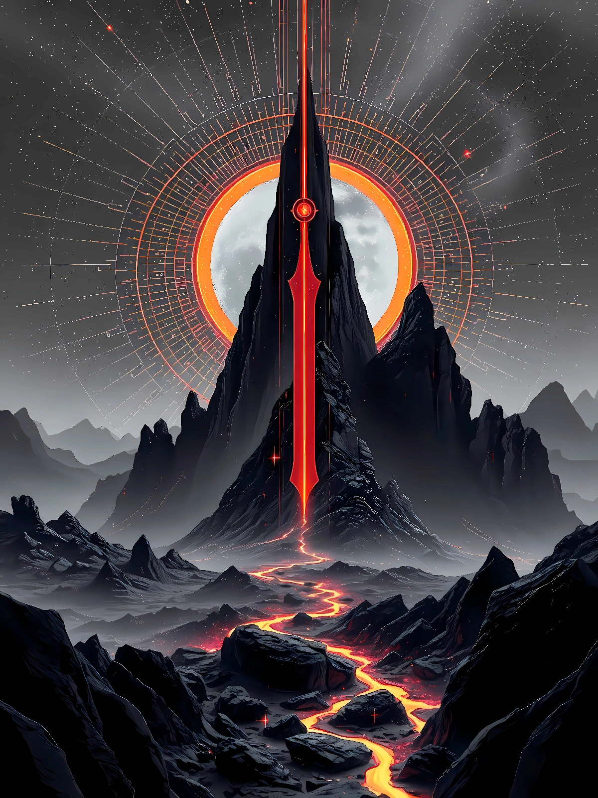 Un sceptre de pierre noire s’élève depuis les plaines désolées vers un ciel chargé de nuages rouges, sa pointe touchant presque la lumière qu’elle ne peut atteindre. Symbole d’un pouvoir exercé mais jamais pleinement possédé. Sur Planète Noire, l’autorité est une illusion partagée. Collection Planète Noire – Format JPG – 6000 x 8000 px – 300 ppp. Licence : usage personnel uniquement. Toute utilisation commerciale interdite sans accord écrit.
