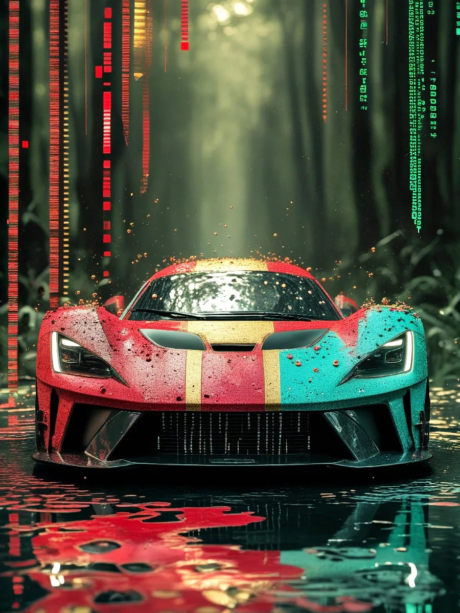Rouge passion et rose intense tourbillonnent autour de cette carrosserie comme une tempête de couleurs. Elle ne passe pas – elle envahit. Elle ne roule pas – elle dévaste. Une tornade d’élégance et de puissance brute. Collection Supercars – des bolides imaginaires nés de l’IA mis en scène dans des décors cinématographiques et graphiques. Format JPG – 6 000 x 8 000 px – 300 ppp. Licence : usage personnel uniquement. Toute utilisation commerciale interdite sans accord écrit.