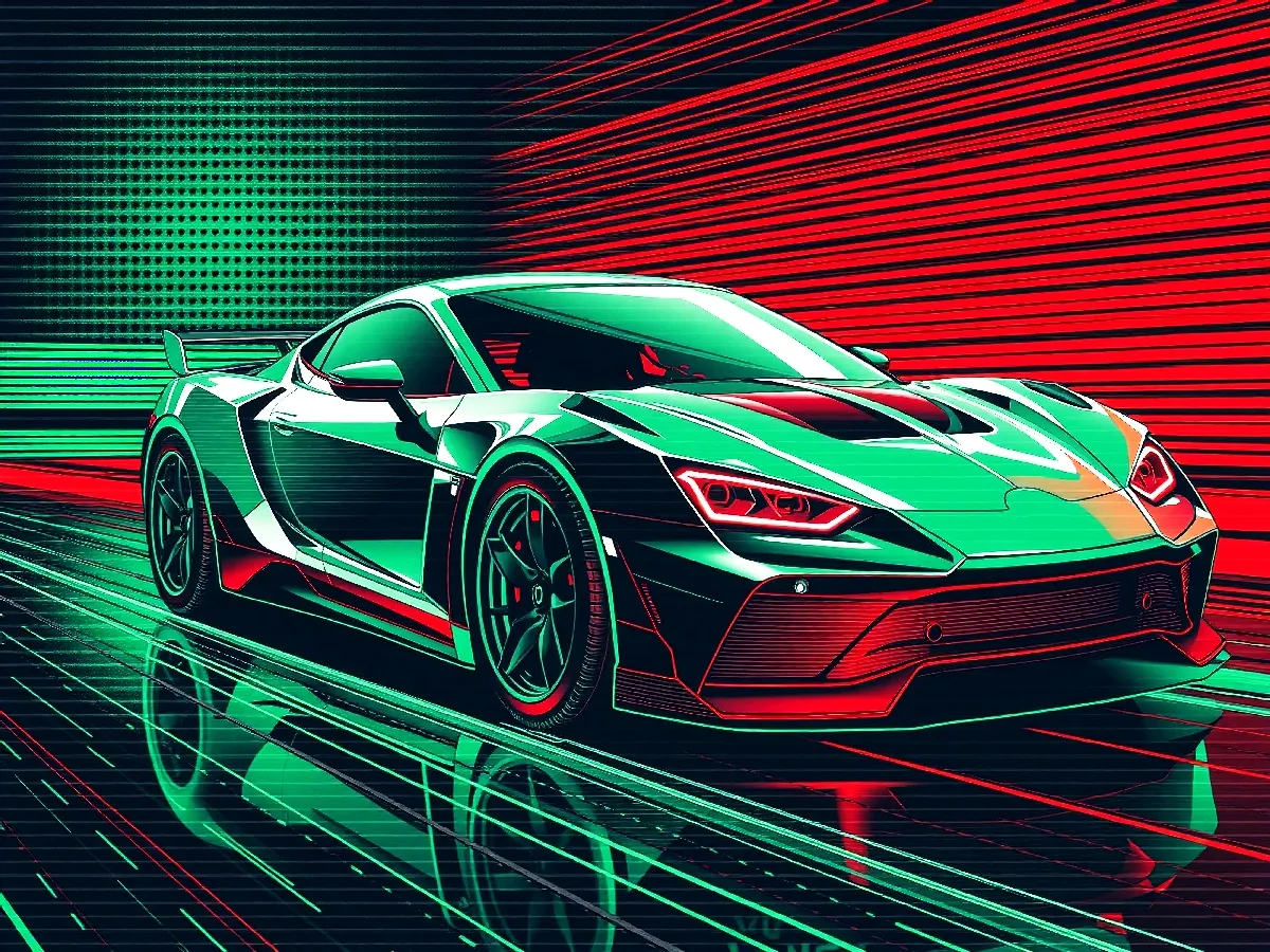 Vert code sur fond d’obscurité digitale – on dirait qu’il vient de traverser l’écran d’une simulation pour s’inviter dans la réalité. Trop parfait pour être vrai trop rapide pour être rattrapé. La frontière entre virtuel et réel n’existe plus. Collection Supercars – des bolides imaginaires nés de l’IA mis en scène dans des décors cinématographiques et graphiques. Format JPG – 8000 x 6000 px – 300ppp. Licence : usage personnel uniquement. Toute utilisation commerciale interdite sans accord écrit.