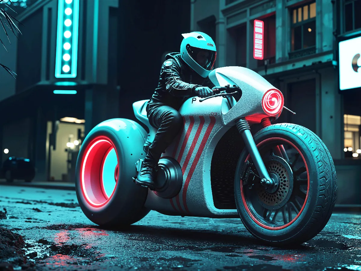 Mi-moto mi-photon elle trace sa route entre deux dimensions que l’oeil humain peine à distinguer. Ses lignes de néon laissent des traînées lumineuses dans l’obscurité comme si la réalité elle-même se fissurait à son passage. Collection Supercars – des bolides imaginaires nés de l’IA mis en scène dans des décors cinématographiques et graphiques. Format JPG – 8000 x 6000 px – 300ppp. Licence : usage personnel uniquement. Toute utilisation commerciale interdite sans accord écrit.