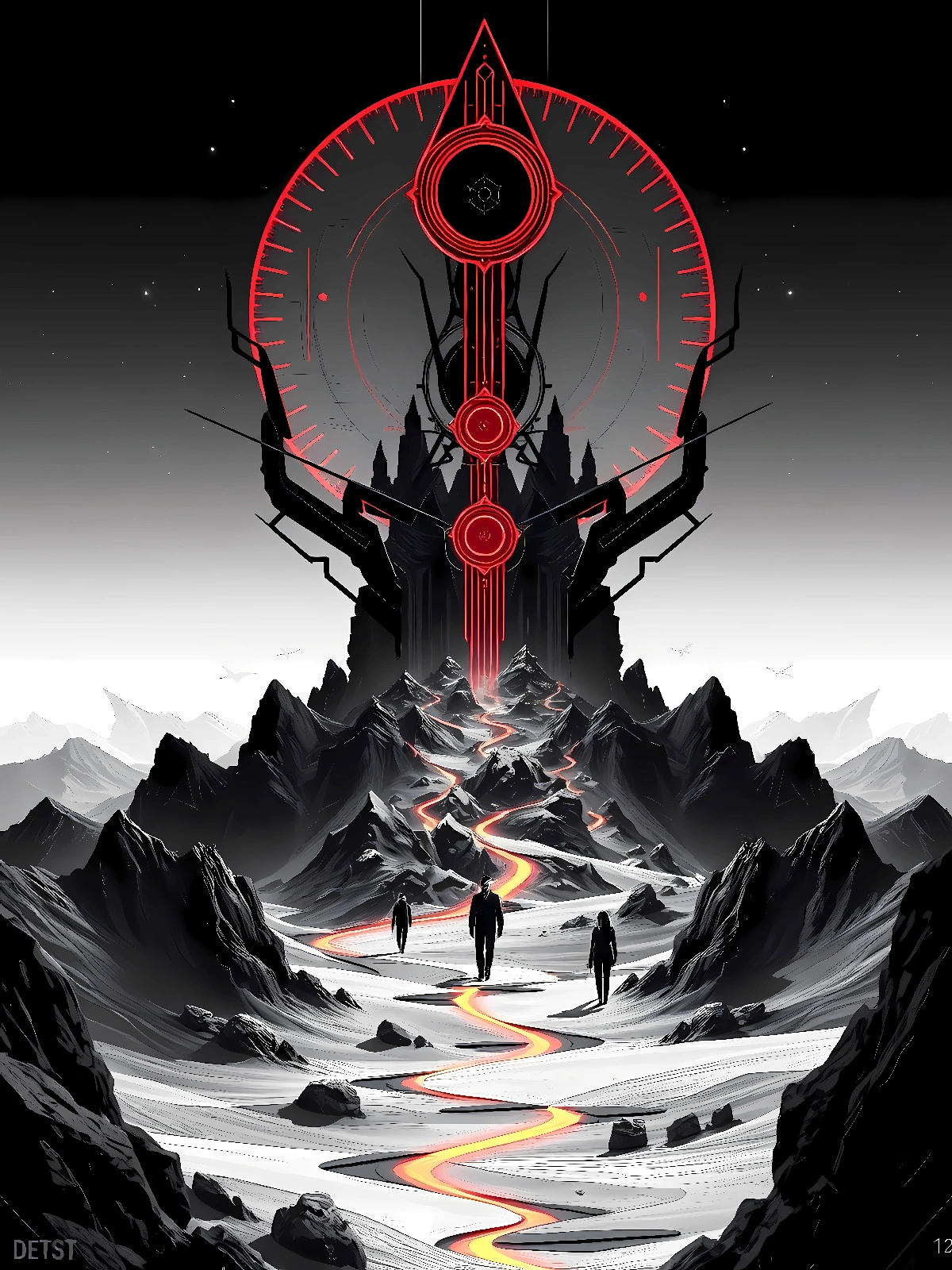 Le temple errant change de position à chaque nouvelle nuit, laissant derrière lui des empreintes de pierre dans le sol. Ses gardiens le suivent sans jamais le comprendre. Sa destination est un secret qu’il garde depuis la naissance de cette planète. Collection Planète Noire – Format JPG – 6000 x 8000 px – 300 ppp. Licence : usage personnel uniquement. Toute utilisation commerciale interdite sans accord écrit.